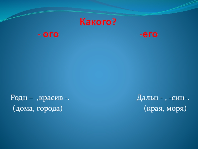 Родительный падеж имен прилагательных в мужском и среднем роде.