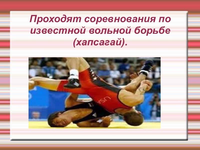 Проходят соревнования по известной вольной борьбе (хапсагай).