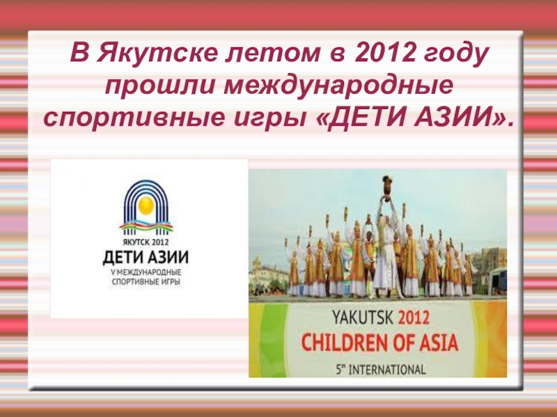 В Якутске летом в 2012 году прошли международные спортивные игры «ДЕТИ АЗИИ».