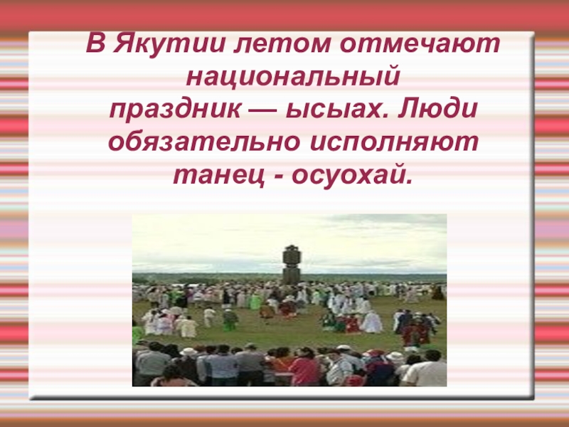 В Якутии летом отмечают национальный праздник — ысыах. Люди обязательно исполняют танец - осуохай.