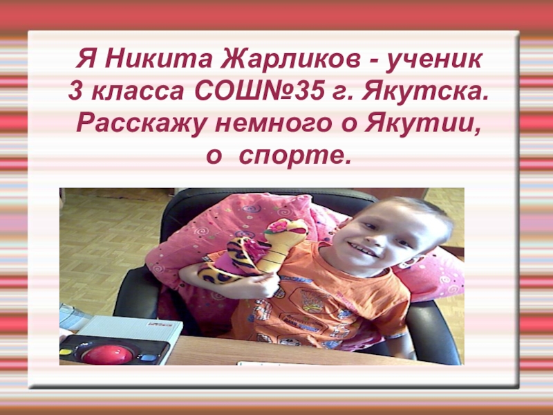 Я Никита Жарликов - ученик 3 класса СОШ№35 г. Якутска. Расскажу немного о Якутии, о спорте.