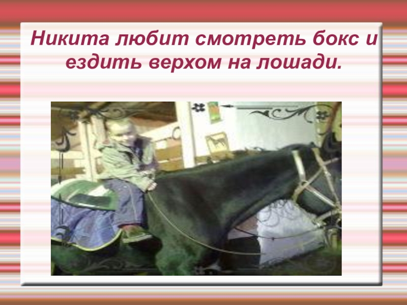 Никита любит смотреть бокс и ездить верхом на лошади.