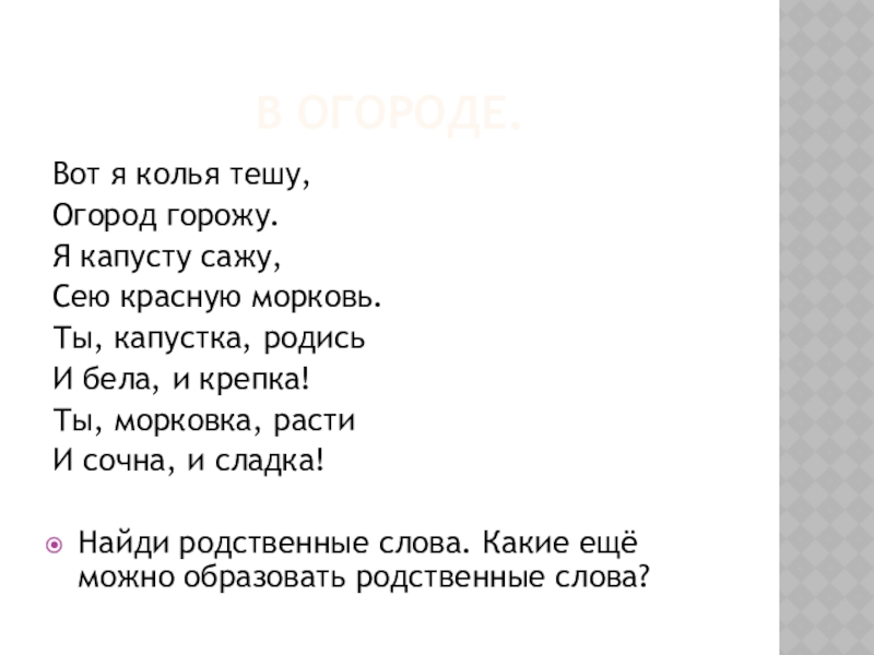 Найди родственные слова. Какие ещё можно образовать родственные слова?