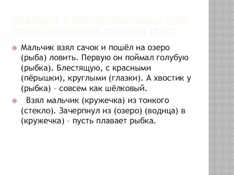 Слайд 13Измените в тексте окончания слов, чтобы получился связный текст.