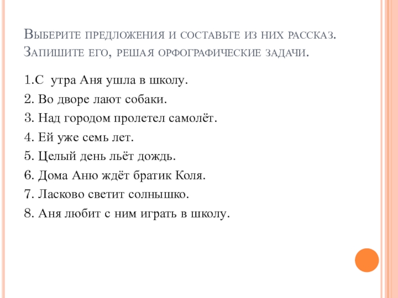 1.С утра Аня ушла в школу.