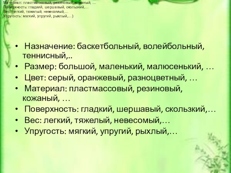 Назначение: баскетбольный, волейбольный, теннисный,..