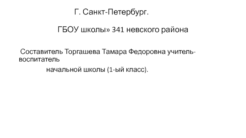 Составитель Торгашева Тамара Федоровна учитель-воспитатель