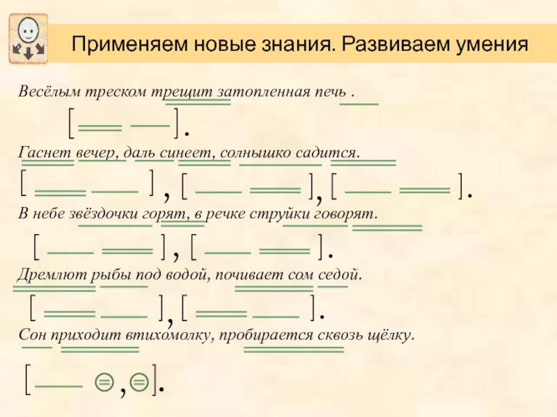 Весёлым треском трещит затопленная печь . (А. Пушкин)
