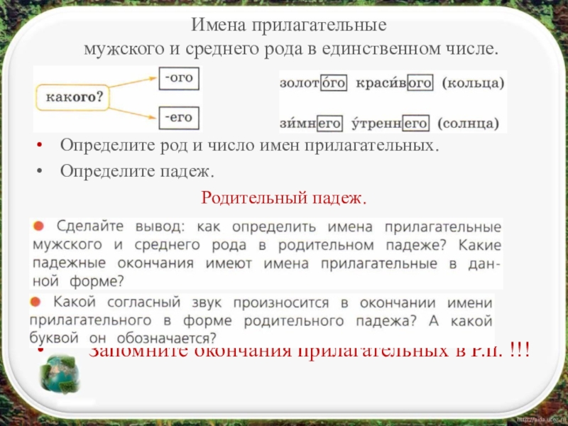 Запомните окончания прилагательных в Р.п. !!!