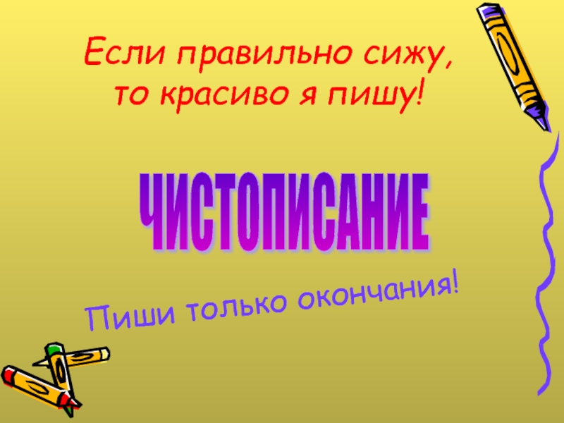 Если правильно сижу, то красиво я пишу!Пиши только окончания!ЧИСТОПИСАНИЕ