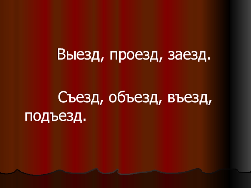 Выезд, проезд, заезд.     Съезд, объезд, въезд,