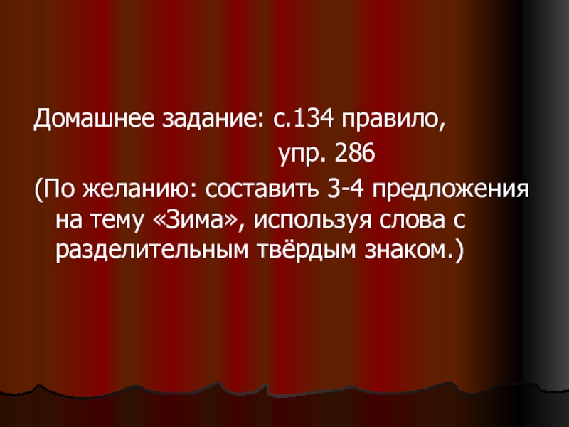 (По желанию: составить 3-4 предложения на тему «Зима», используя слова с разделительным твёрдым знаком.)