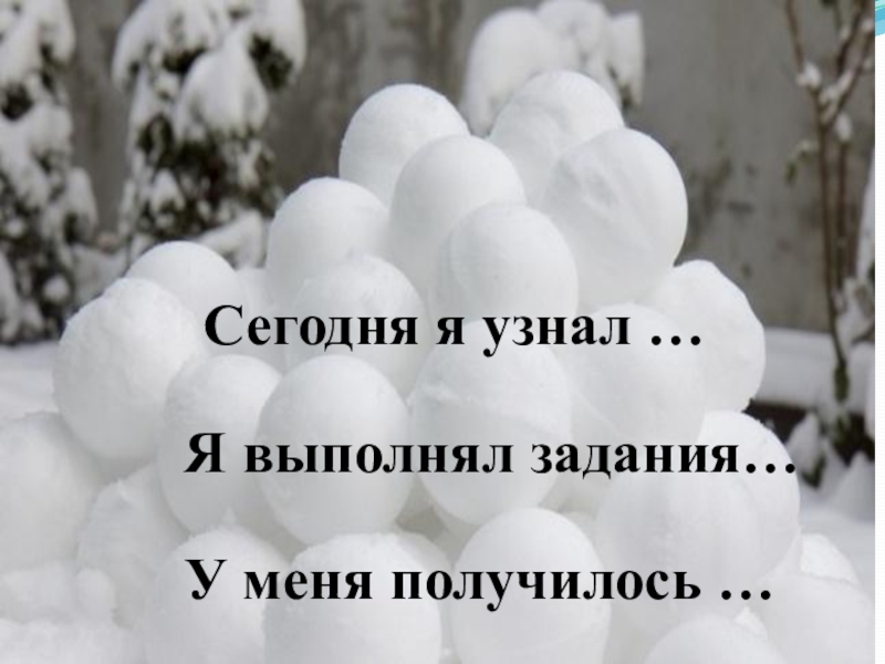 Сегодня я узнал …  Я выполнял задания…  У меня получилось …