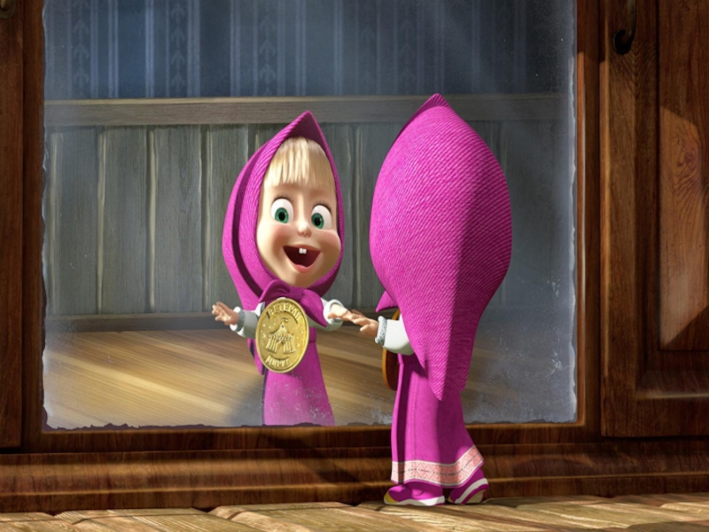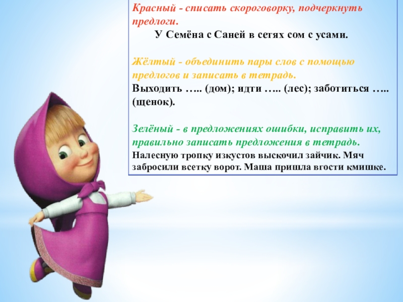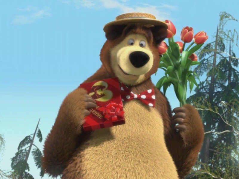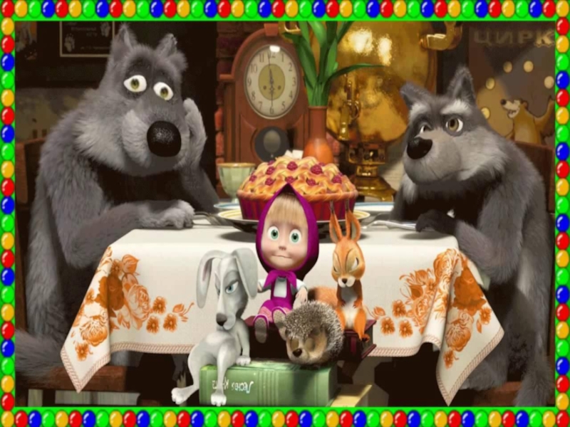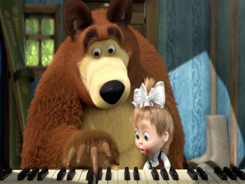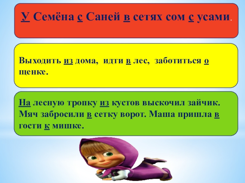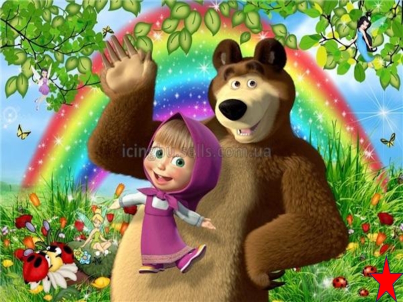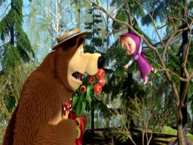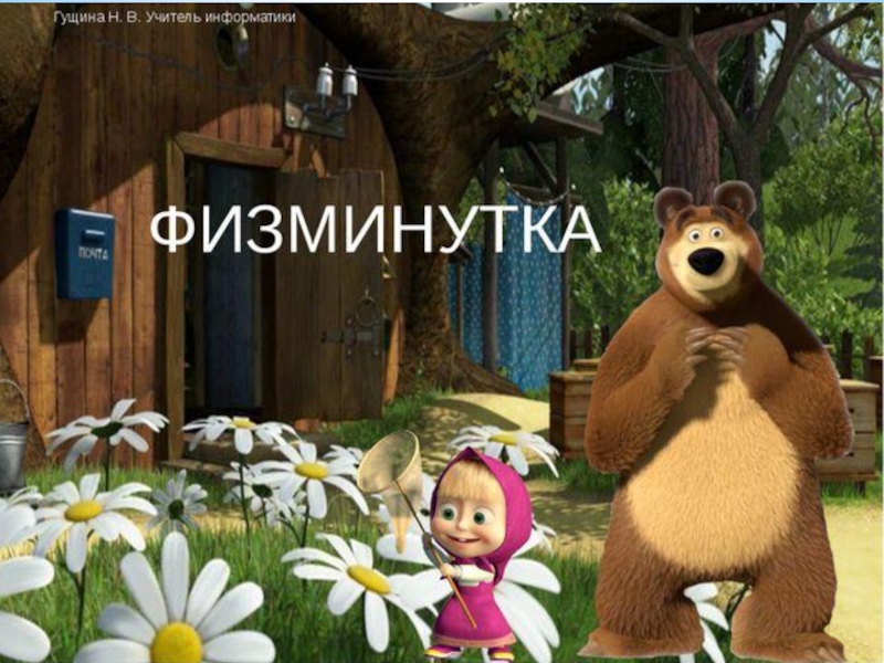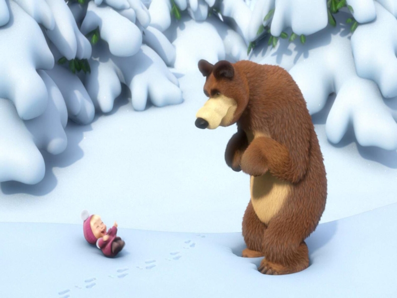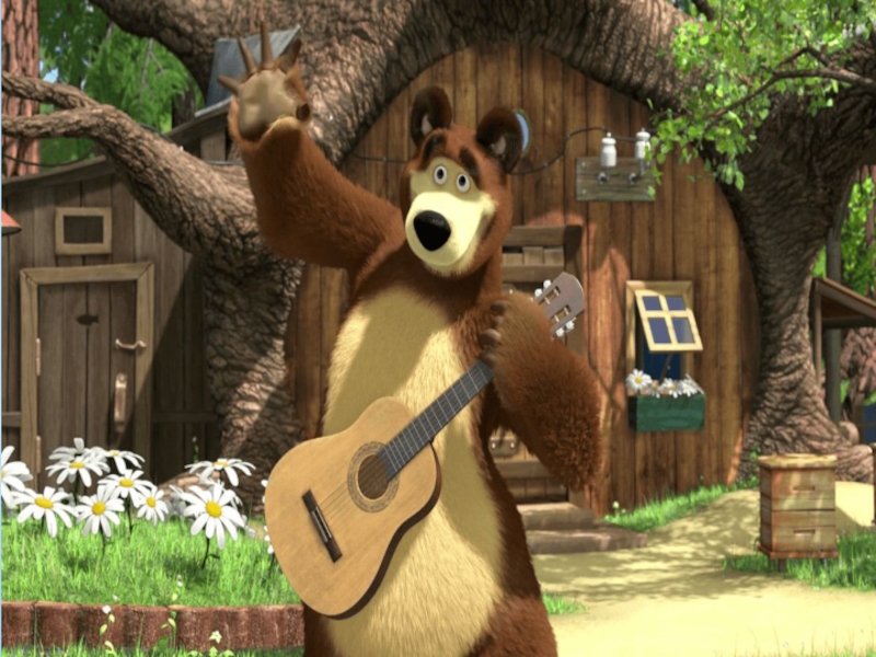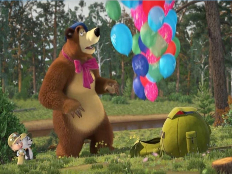 На лесную тропку из кустов выскочил зайчик. Мяч забросили в сетку ворот. Маша пришла в гости к мишке.