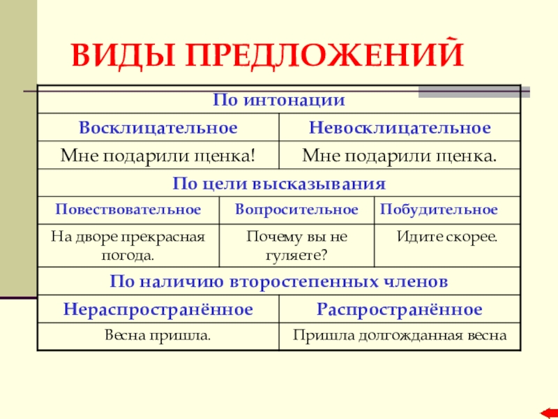 ВИДЫ ПРЕДЛОЖЕНИЙ