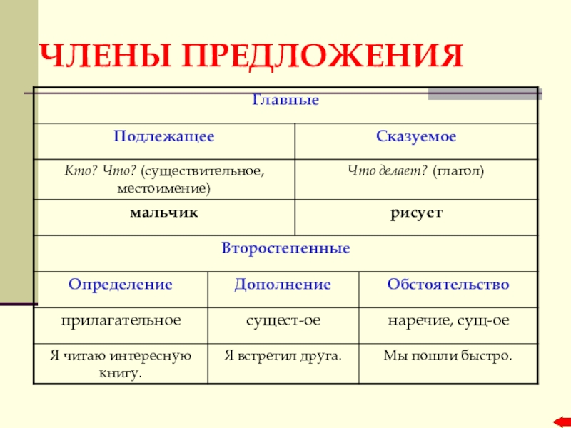 ЧЛЕНЫ ПРЕДЛОЖЕНИЯ