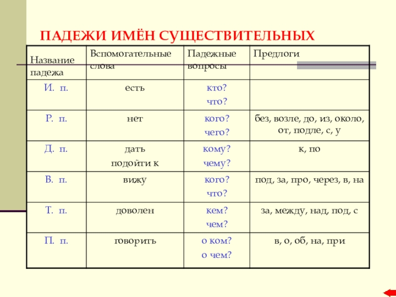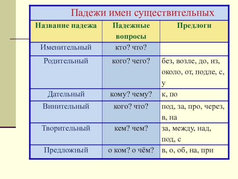 ПАДЕЖИ ИМЁН СУЩЕСТВИТЕЛЬНЫХ