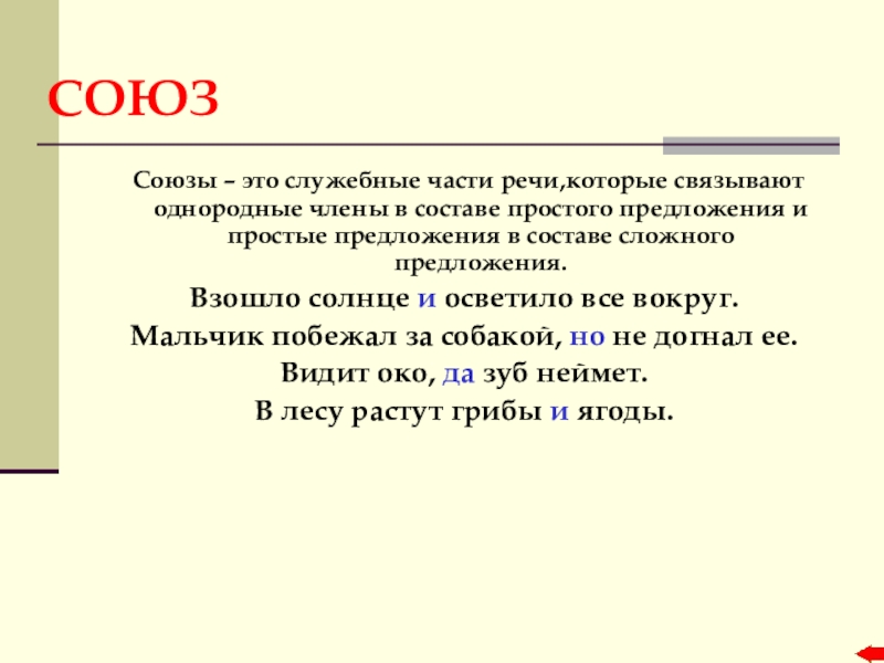 Союзы – это служебные части речи,которые связывают однородные члены в