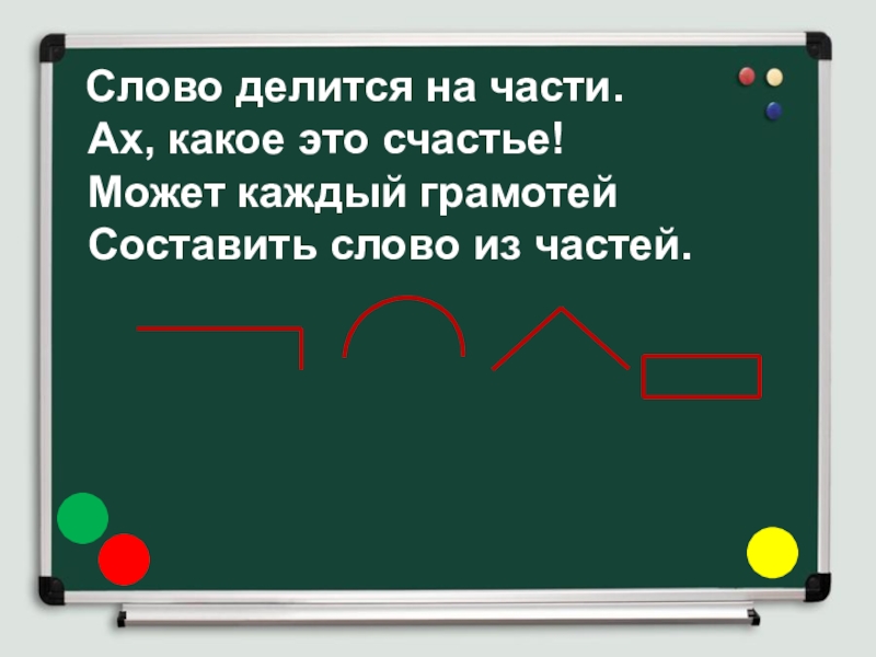 Слайд 5 Слово делится на части. Ах, какое это счастье! Может
