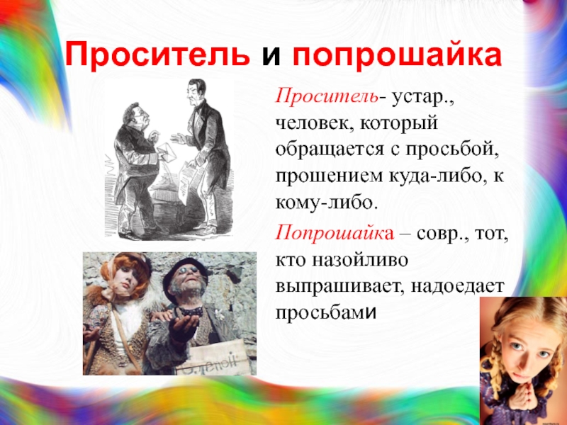 Слайд 19Проситель и попрошайка