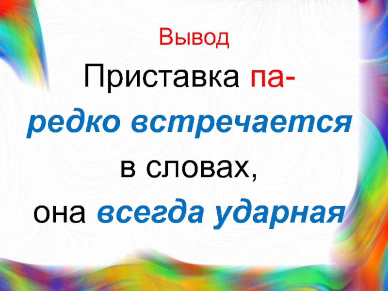 Вывод Приставка па- редко встречается в словах, она всегда ударная