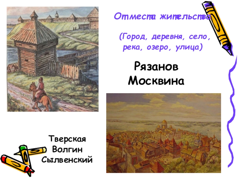 От места жительства (Город, деревня, село, река, озеро, улица)Тверская Волгин СылвенскийРязановМосквина