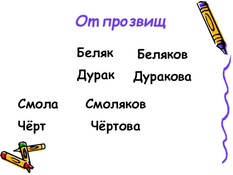От прозвищБелякДуракБеляковДураковаСмолаЧёртСмоляковЧёртова