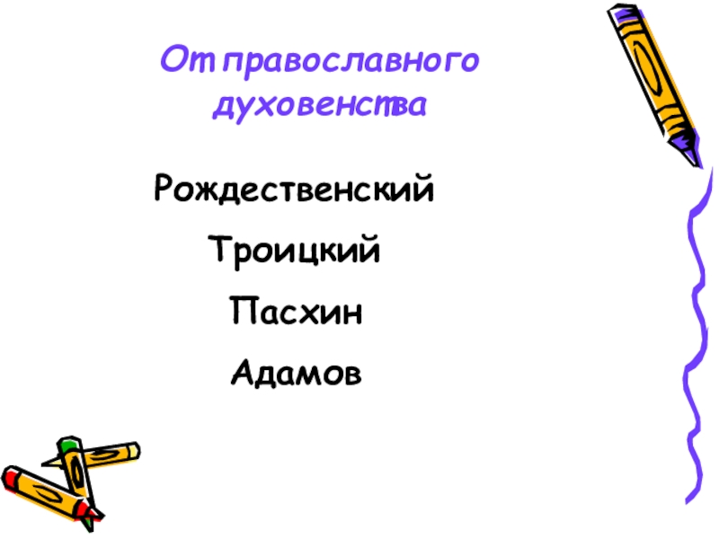 От православного духовенстваРождественскийТроицкийПасхинАдамов
