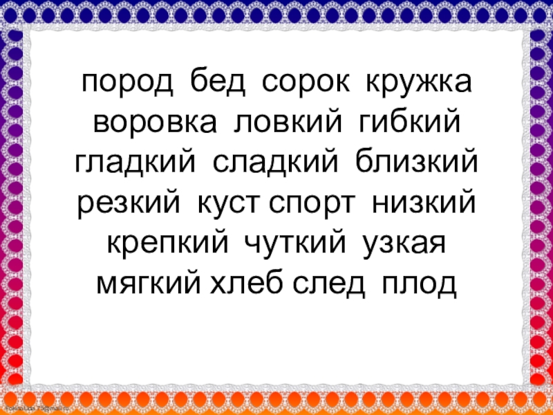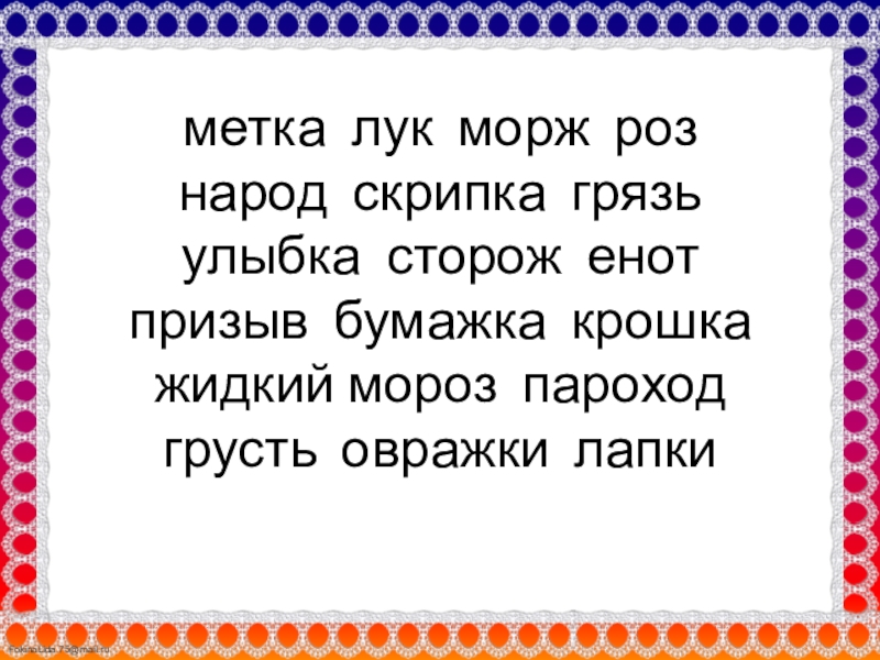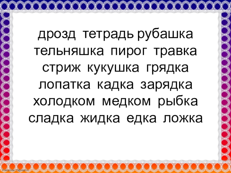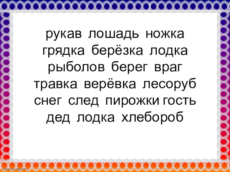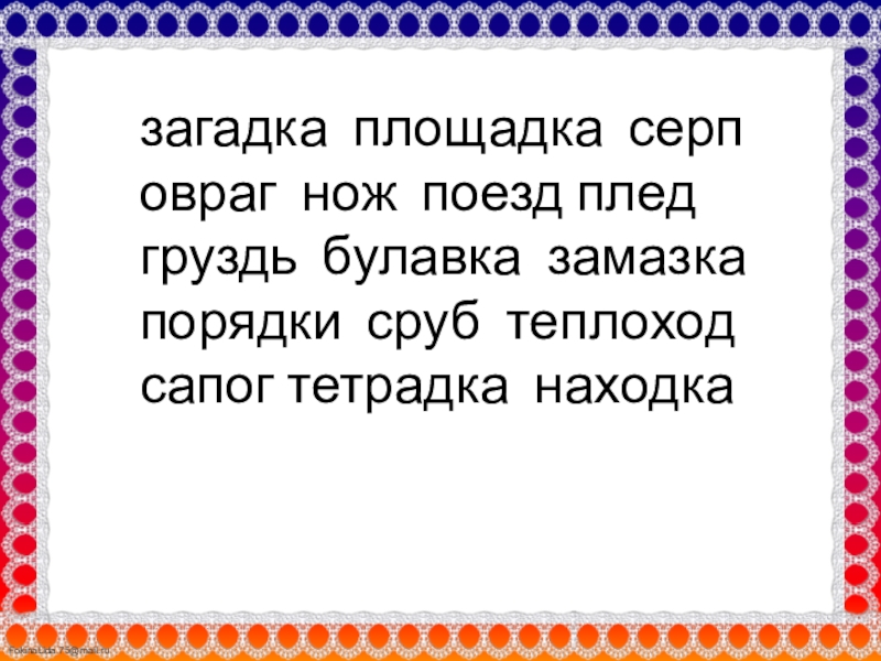 овраг нож поезд плед груздь булавка замазка порядки сруб теплоход сапог тетрадка находка