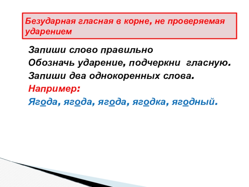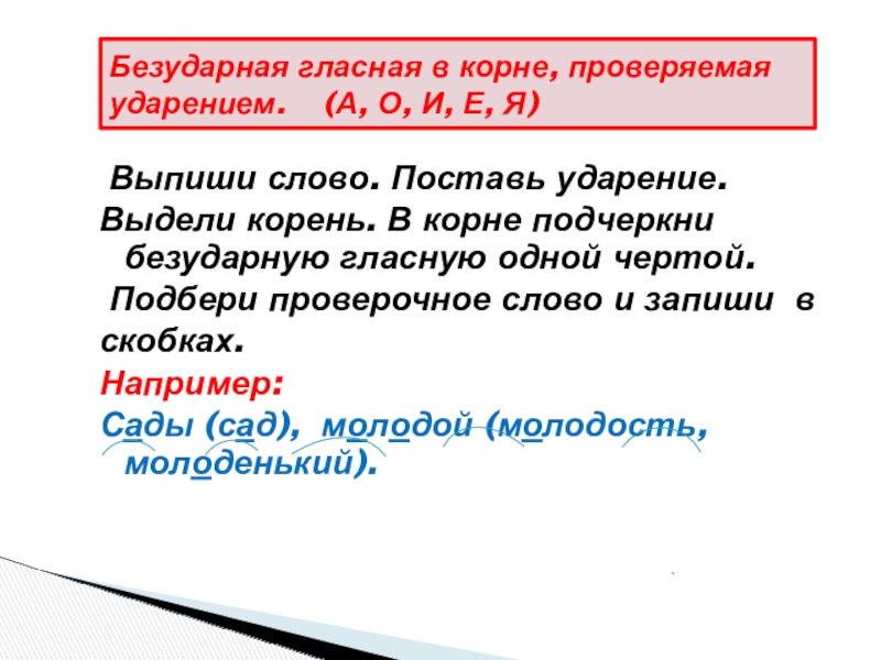 Безударная гласная в корне, проверяемая ударением. (А, О, И, Е, Я)