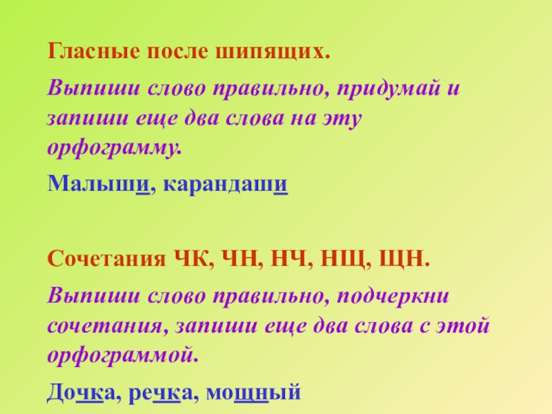 Сочетания ЧК, ЧН, НЧ, НЩ, ЩН.