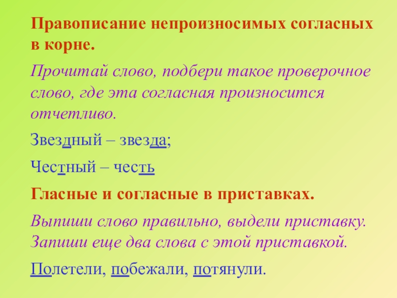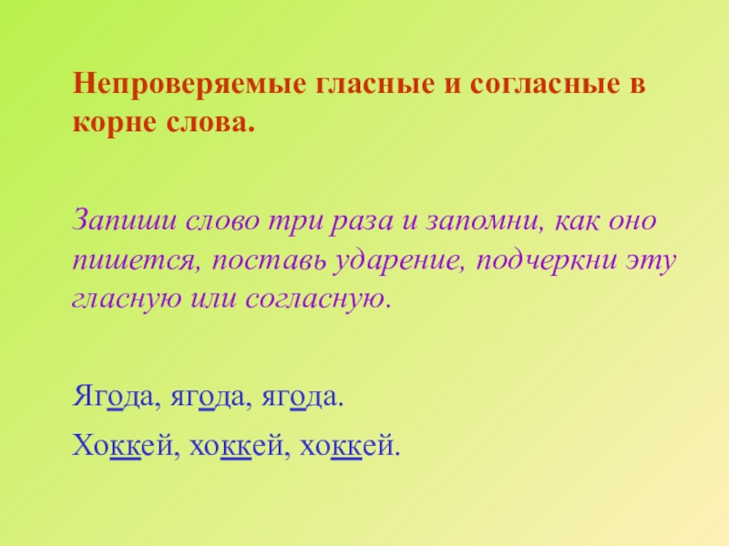 Слайд 6Непроверяемые гласные и согласные в корне слова.