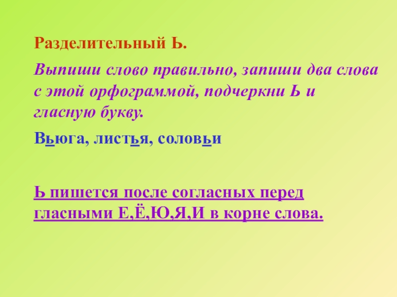 Подчеркни Ь и согласную перед ним, запиши еще два слова с этой орфограммой.