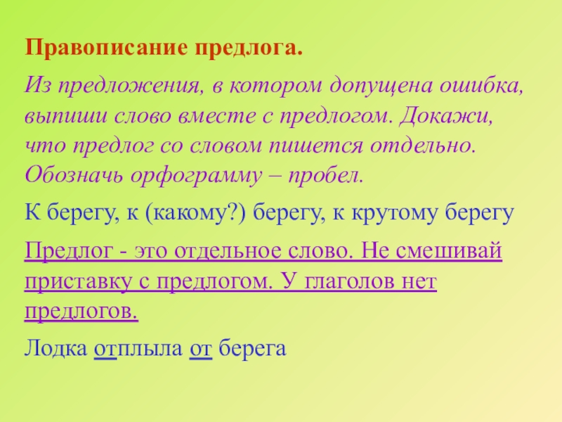 с предлогом. Докажи, что предлог со словом пишется отдельно. Обозначь орфограмму – пробел.