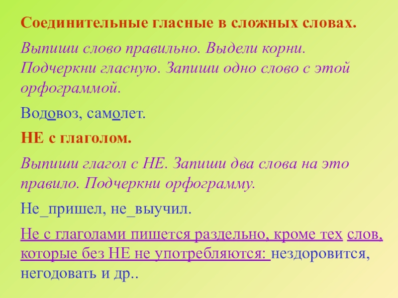 Выпиши глагол с НЕ. Запиши два слова на это правило. Подчеркни орфограмму.