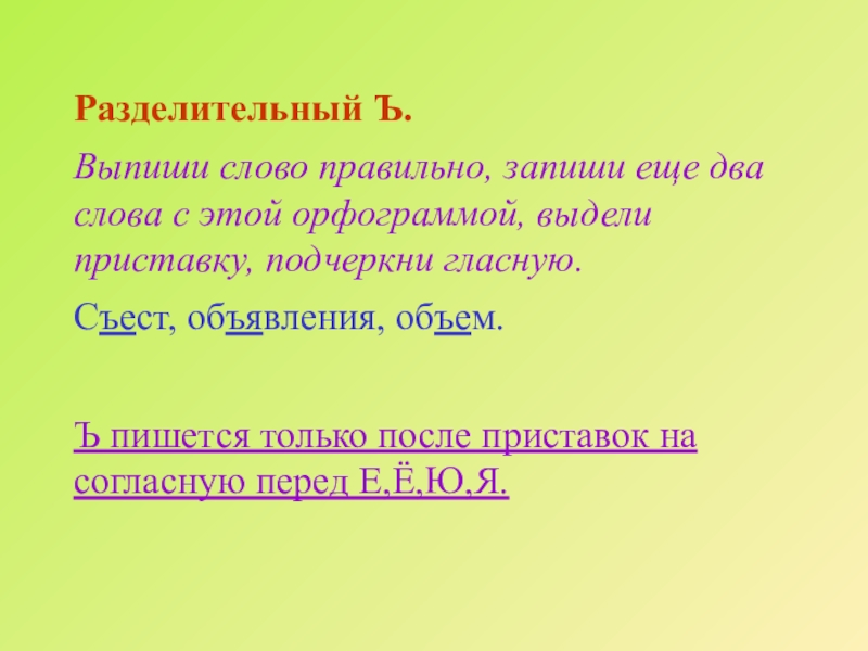 Ъ пишется только после приставок на согласную перед Е,Ё,Ю,Я.
