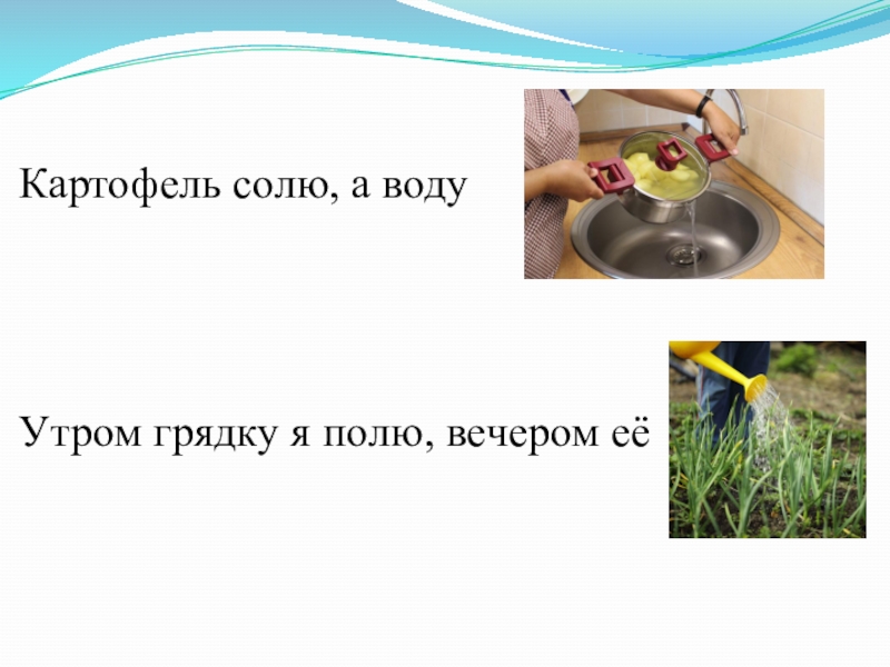 Картофель солю, а воду Утром грядку я полю, вечером её