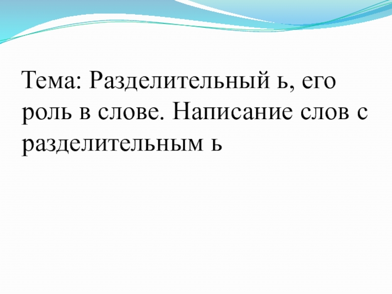 Слайд 3 Тема: Разделительный ь, его роль в слове. Написание слов с