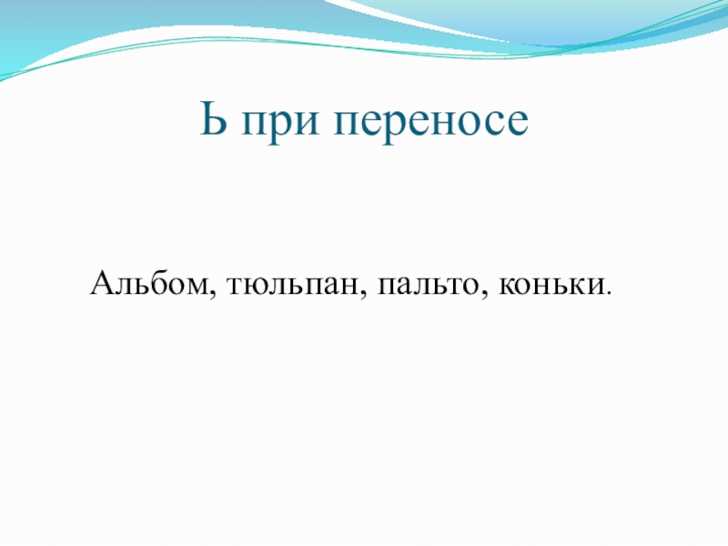 Ь при переносе    Альбом, тюльпан, пальто, коньки.