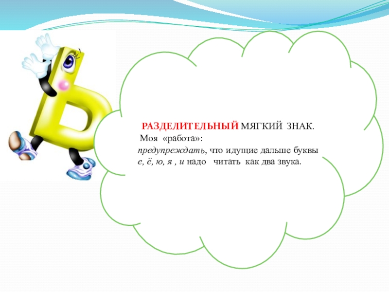 РАЗДЕЛИТЕЛЬНЫЙ МЯГКИЙ ЗНАК. Моя «работа»:предупреждать, что идущие дальше буквы е, ё, ю, я , и надо