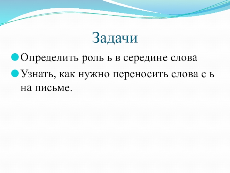 ЗадачиОпределить роль ь в середине словаУзнать, как нужно переносить слова с ь на письме.
