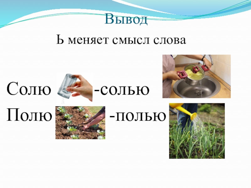 ВыводЬ меняет смысл словаСолю     -сольюПолю      -полью
