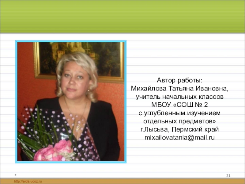 Это сайт презентаций, где можно хранить и обмениваться своими презентациями, докладами, проектами, шаблонами в формате PowerPoint с другими пользователями. Мы помогаем школьникам, студентам, учителям, преподавателям хранить и обмениваться учебными материалами.