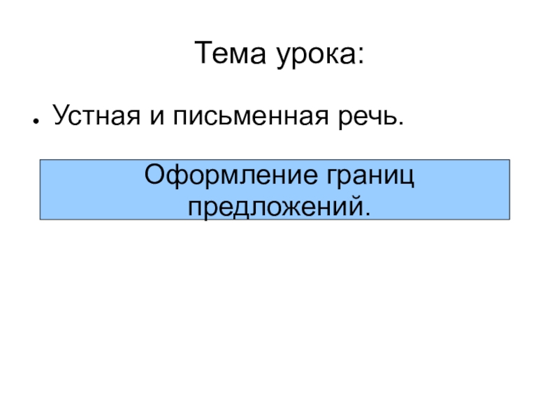Тема урока:Устная и письменная речь.Оформление границ предложений.