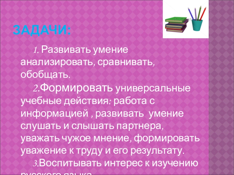 Это сайт презентаций, где можно хранить и обмениваться своими презентациями, докладами, проектами, шаблонами в формате PowerPoint с другими пользователями. Мы помогаем школьникам, студентам, учителям, преподавателям хранить и обмениваться учебными материалами.