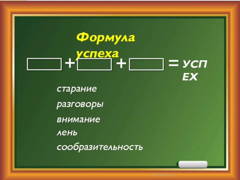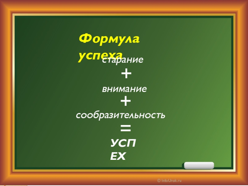 © InfoUrok.ruФормула успехавниманиеУСПЕХ=++сообразительностьстарание