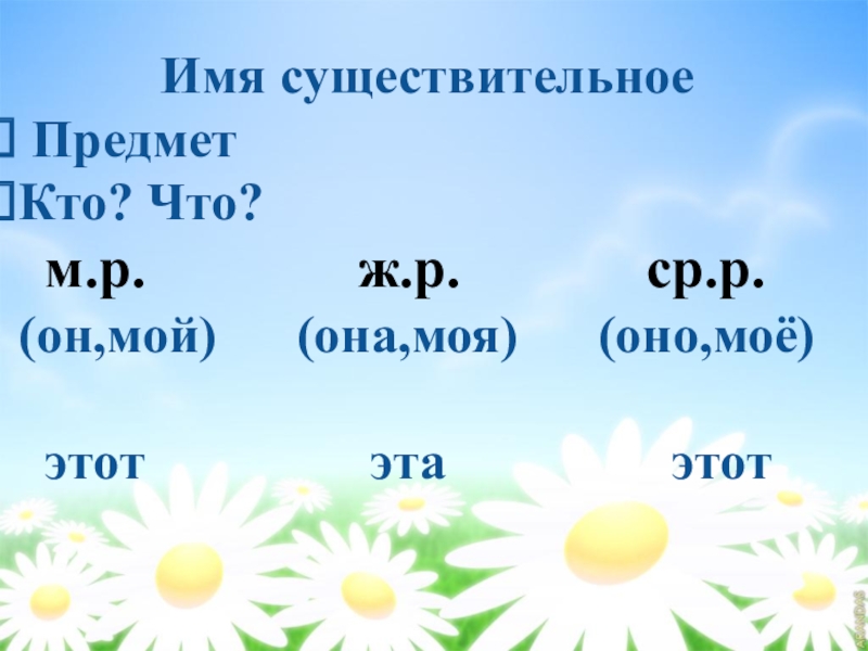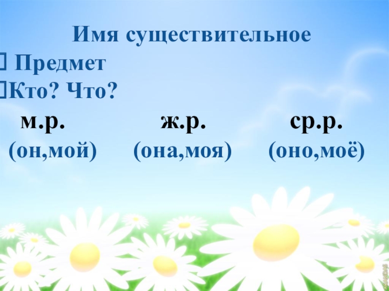 Имя существительное ПредметКто? Что? м.р.        ж.р.