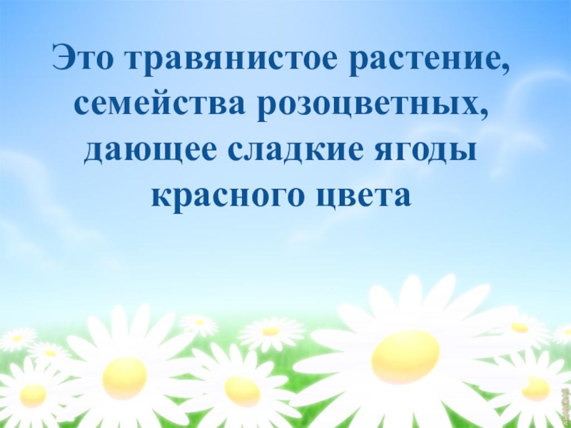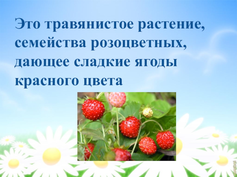 Слайд 12Это травянистое растение,семейства розоцветных,дающее сладкие ягоды красного цвета
