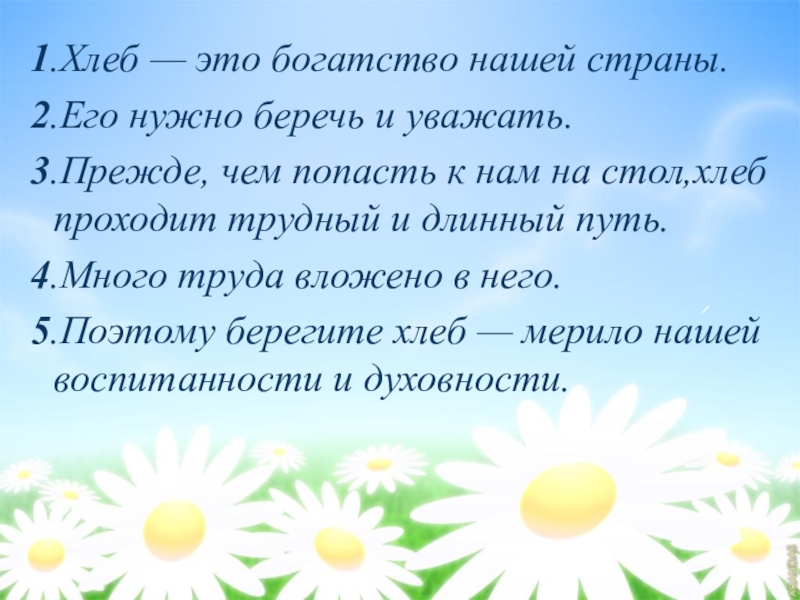 5.Поэтому берегите хлеб — мерило нашей воспитанности и духовности.