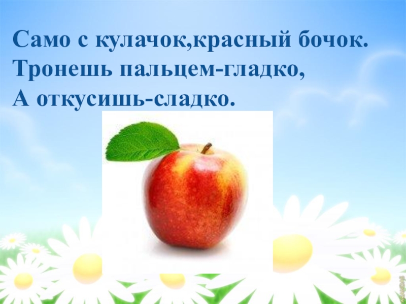 Само с кулачок,красный бочок.Тронешь пальцем-гладко,А откусишь-сладко.